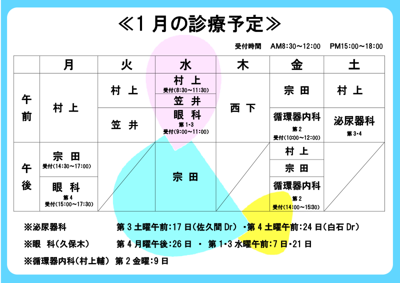 火曜午後・木曜午後・土曜午後・日曜・祝日・和陽会創立記念日(11/1)